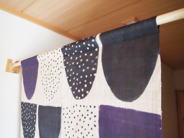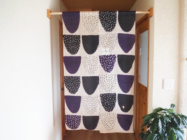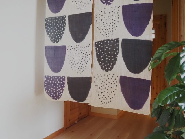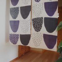 【SOLD OUT】 麻100%手描き暖簾 〈ポケット〉 パープル