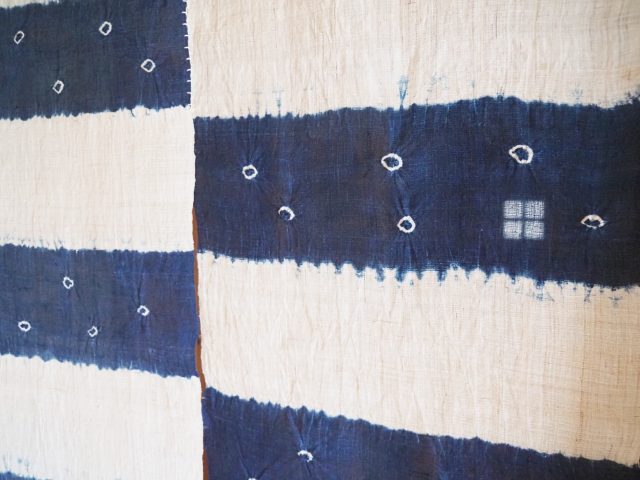 麻100%手描き暖簾 〈藍染 羅仙絞り〉