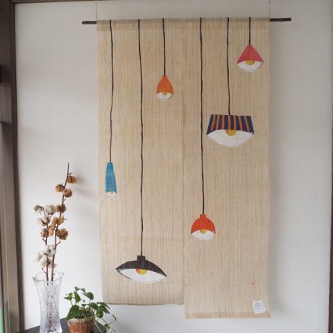 麻100%手描き暖簾 〈ライト〉 藍墨茶