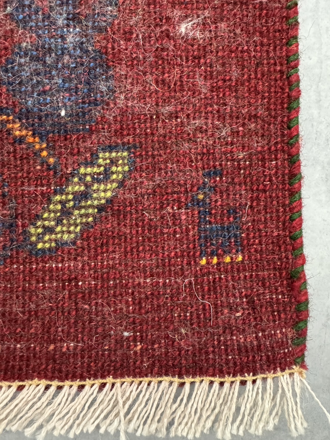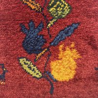 大地にテントを張り、地面に敷くための生活道具でありお布団にもなるため、毛足が長く丈夫でフカフカした感触があります。織り子さんの感性のみで描かれる個性的な文様が魅力的でお部屋に明るさとホッとする場所を与えてくれます。