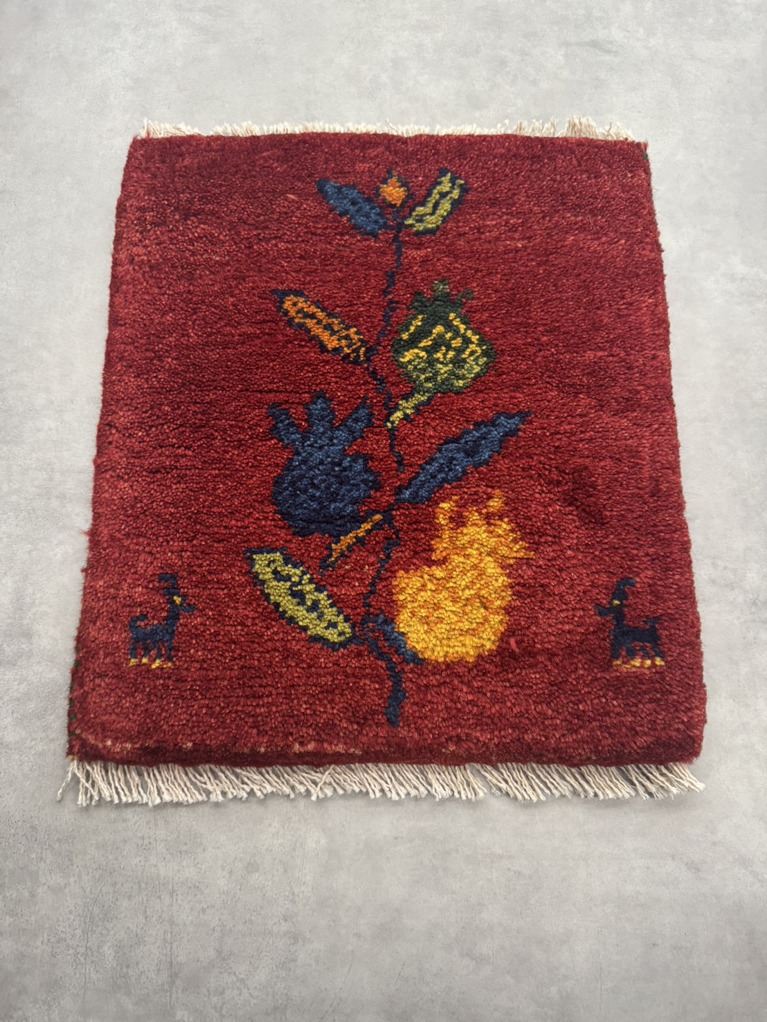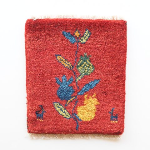 【SOLD OUT】 ギャッベ | 座布団サイズ 42×37cm 生命の樹 鹿 イラン #SC-127