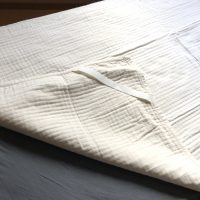 四重ガーゼのうち、中の2層はガーゼをわた状にしているのでふわっとしており、肌触りが優しく、また洗濯していただけるので衛生的で赤ちゃんにも心地よくお使いいただけます。
