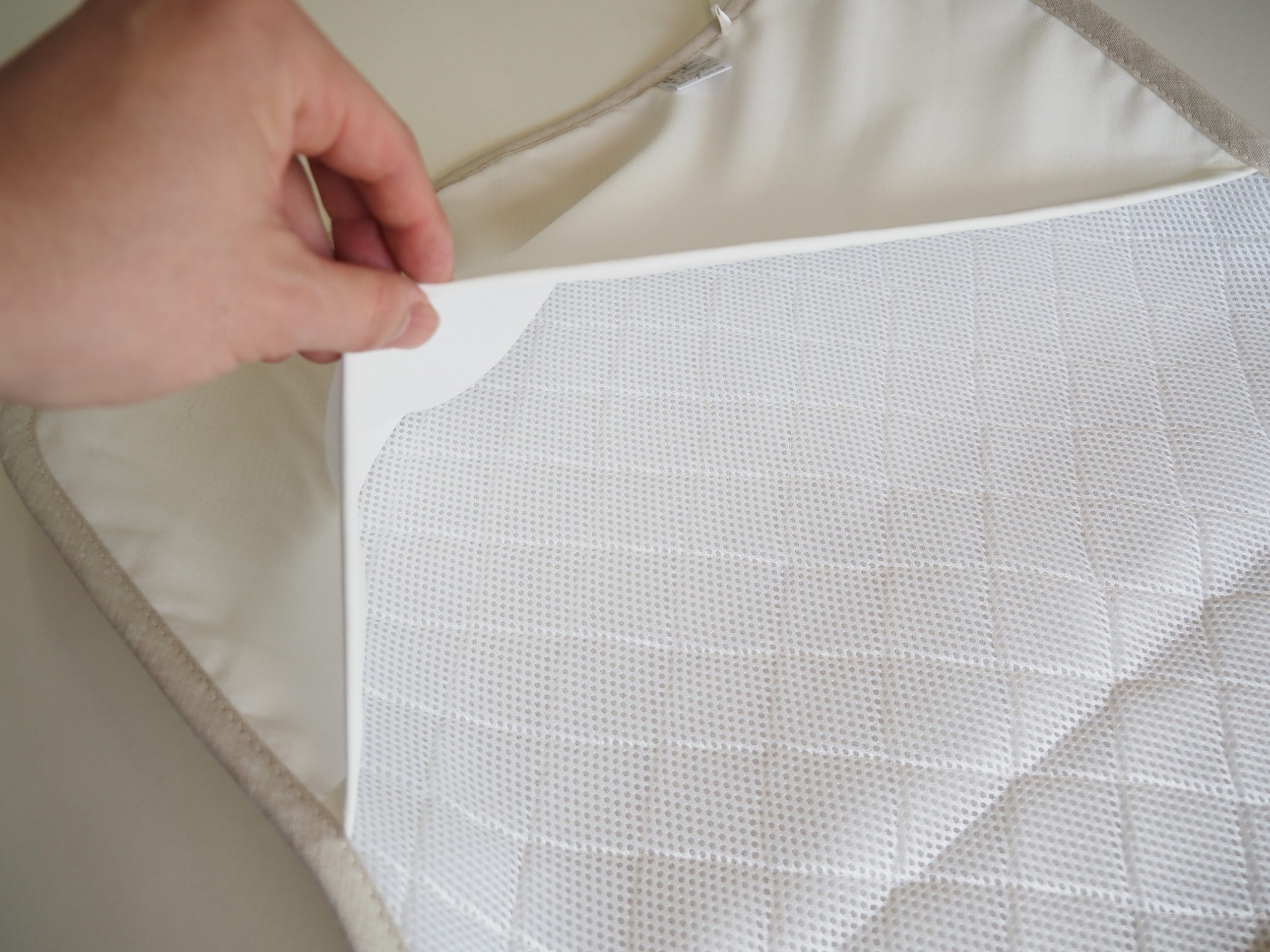 引っ掛けるだけのキャップ式で扱いやすいのがポイント! ピロケースだと面倒だけど、「パッドならラクチン」というお声を沢山頂きました♪