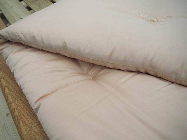 ※ご家庭やコインランドリーでは洗えません。乾燥が十分に出来ない上に、中わたが片寄り「敷きふとん」として機能しなくなります