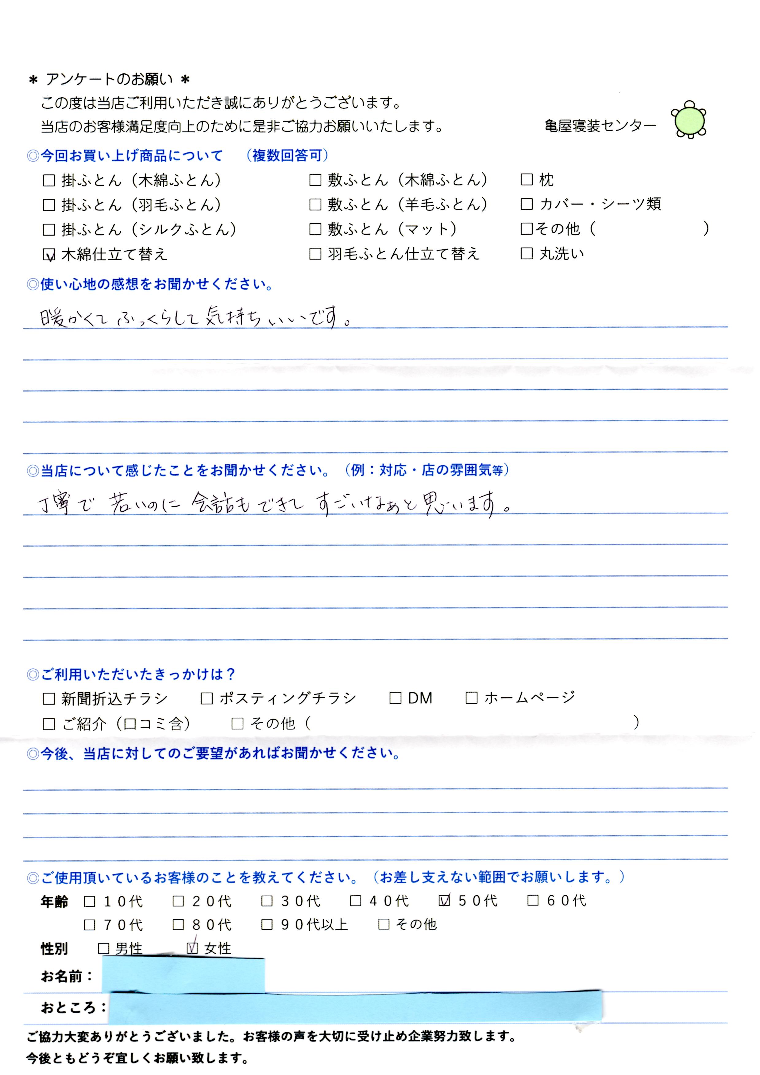 お買い上げ商品:木綿ふとん仕立替え