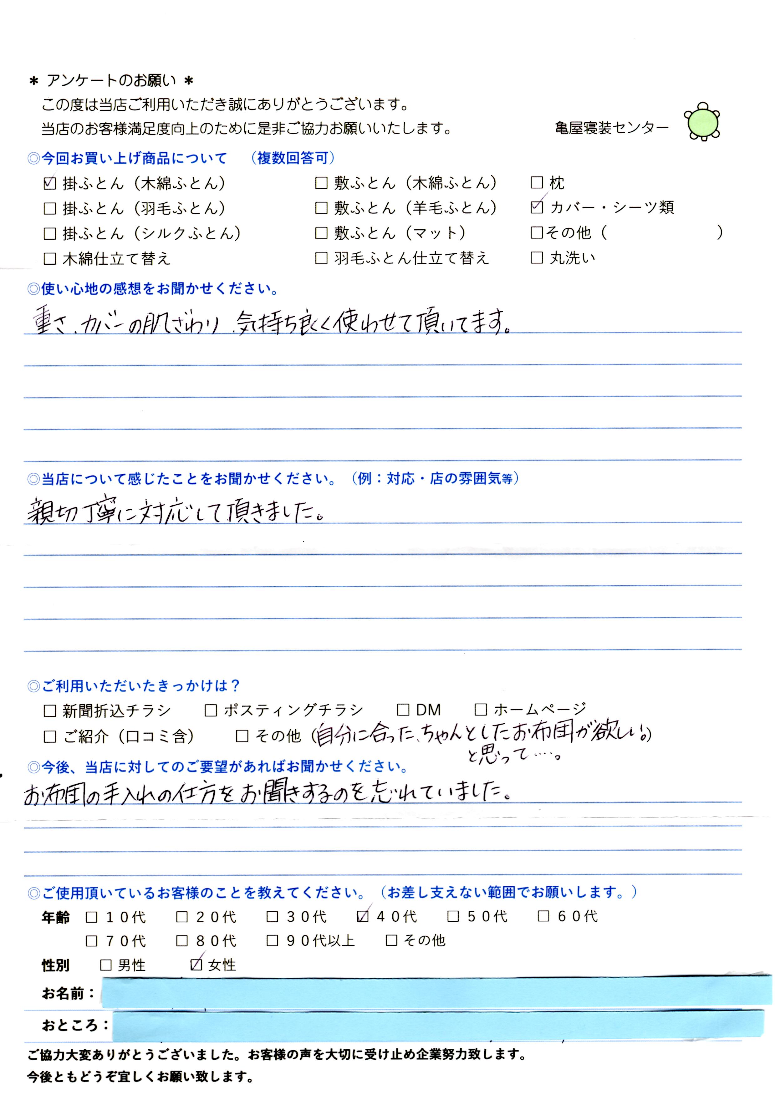 ◎ご利用いただいたきっかけは? 自分に合ったちゃんとしたお布団が欲しい。と思って…。