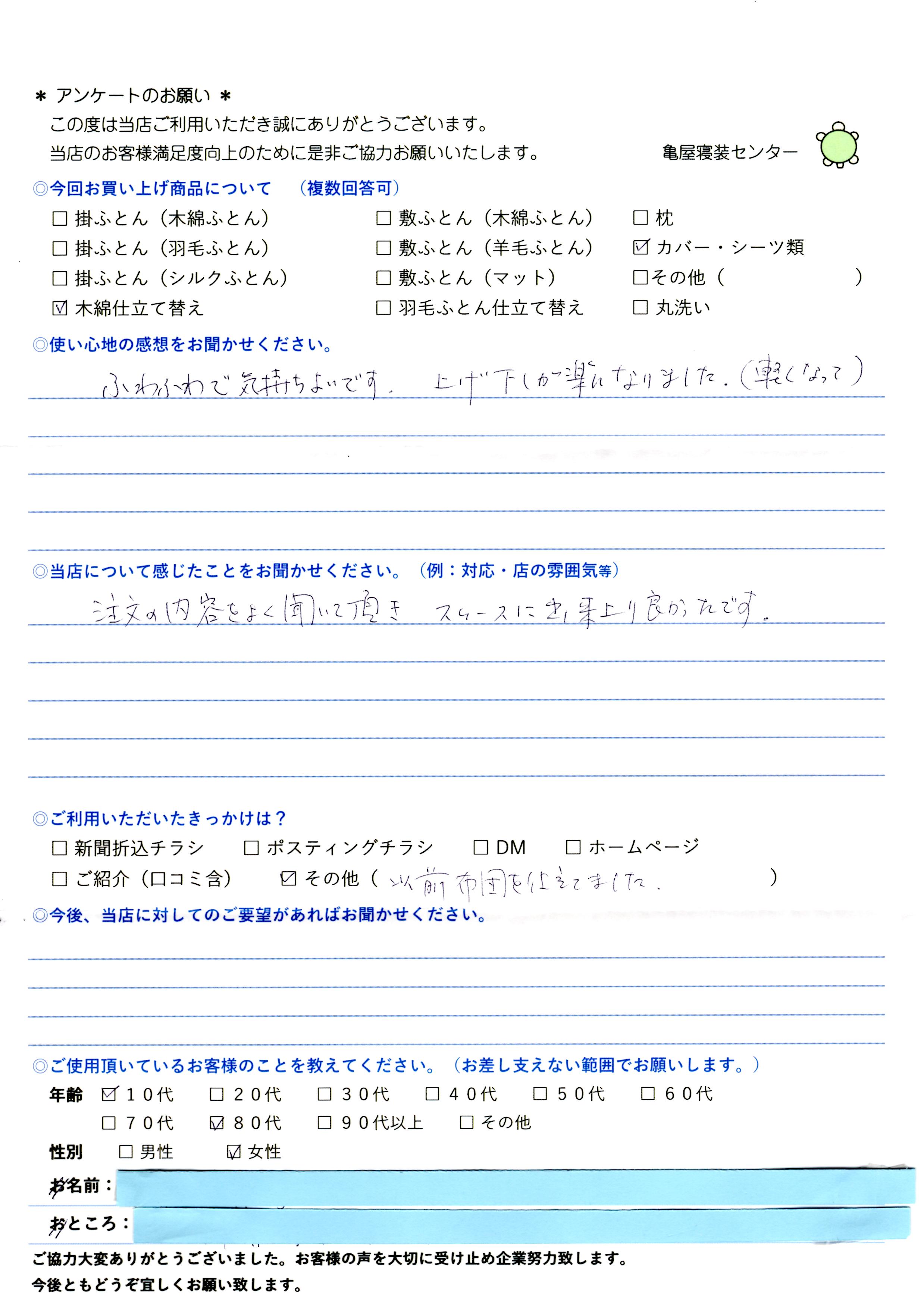 - お買い上げ商品:木綿ふとん仕立替え , カバー